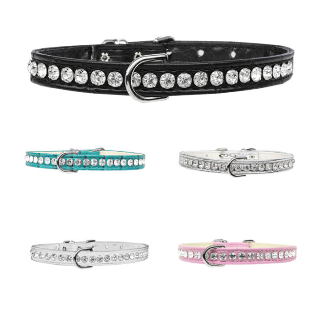 高級感のあるクロコダイル調型押しベルトにキラキラのクリスタルラインストーンを装飾したドッグカラーです。