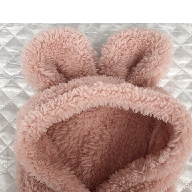ふわふわモコモコのうさぎ耳つきフリースです。