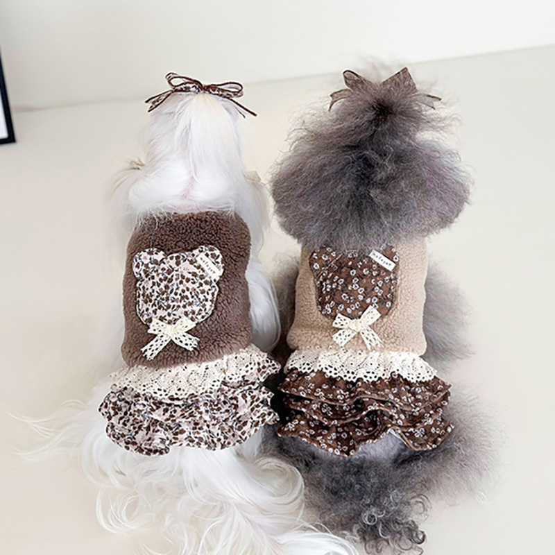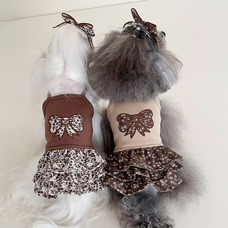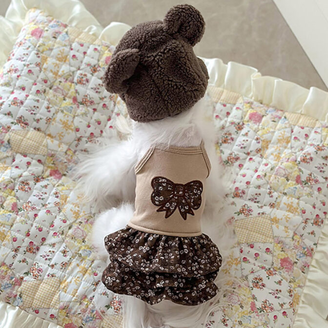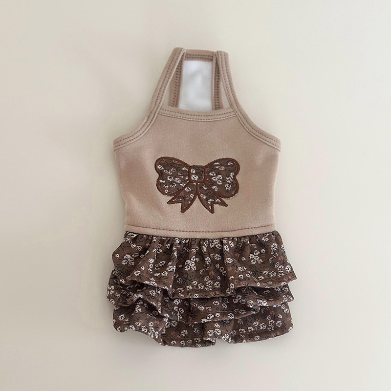 商品名 犬用ワンピース 花柄 3段フリル|リボン パッチワーク