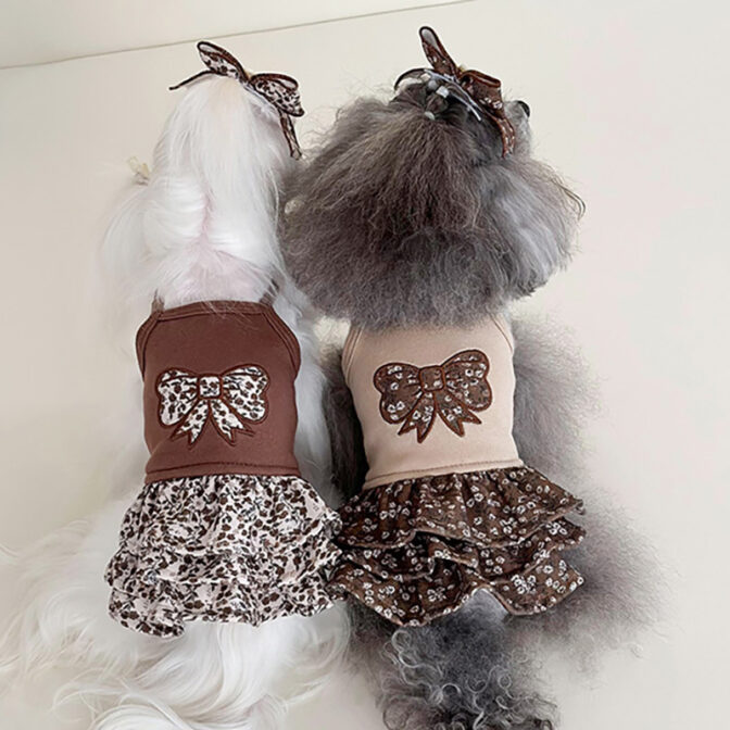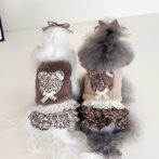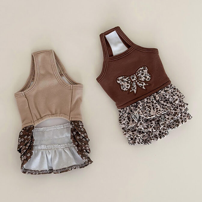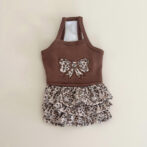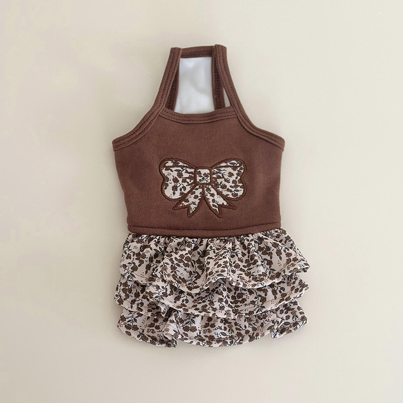 犬用ワンピース 花柄 3段フリル|リボン パッチワーク